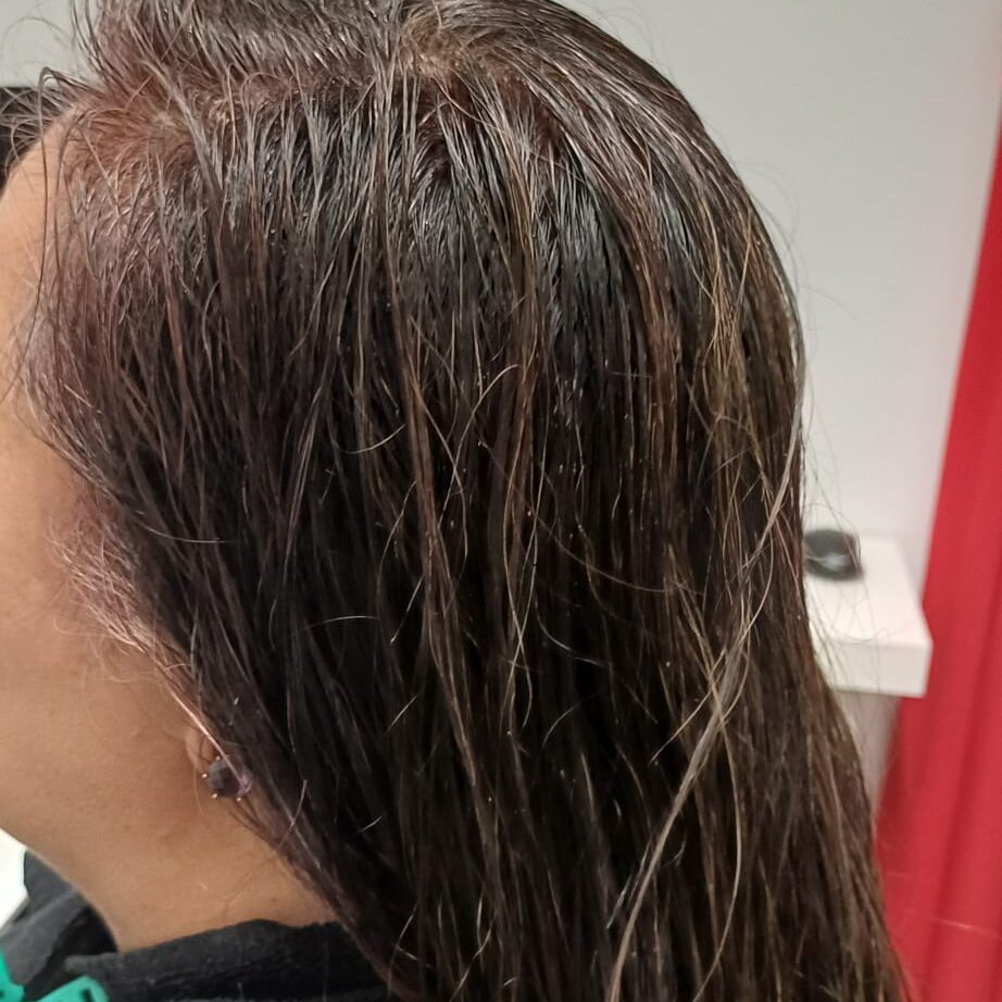 Mi caída de cabello comenzó después de la tercera sesión, y en total he perdido aproximadamente un 20% del cabello, de forma uniforme y sin zonas calvas. De hecho, la mayoría de las personas ni siquiera nota que he perdido algo de cabello. Esto me ha dado mucha confianza para continuar con mi vida diaria sin sentirme definida por el tratamiento.